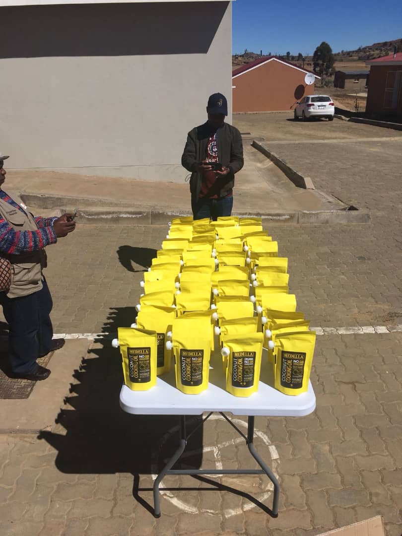 Earlier this year, we shipped out 53 cartons of coconut oil to Lesotho to help combat malnutrition in children. In August, we flew out to Lesotho to be a part of World Vision's nutrition program to hand out pouches of Medella Coconut Cooking Oil and nutrition packs to families in Lesotho.